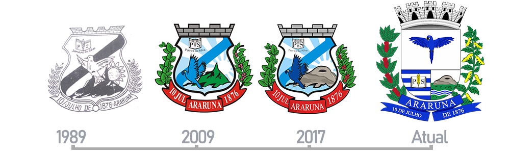 Brasão de Araruna em sua criação em 1989, renovação 2009, retificação em 2017 e o Atual .