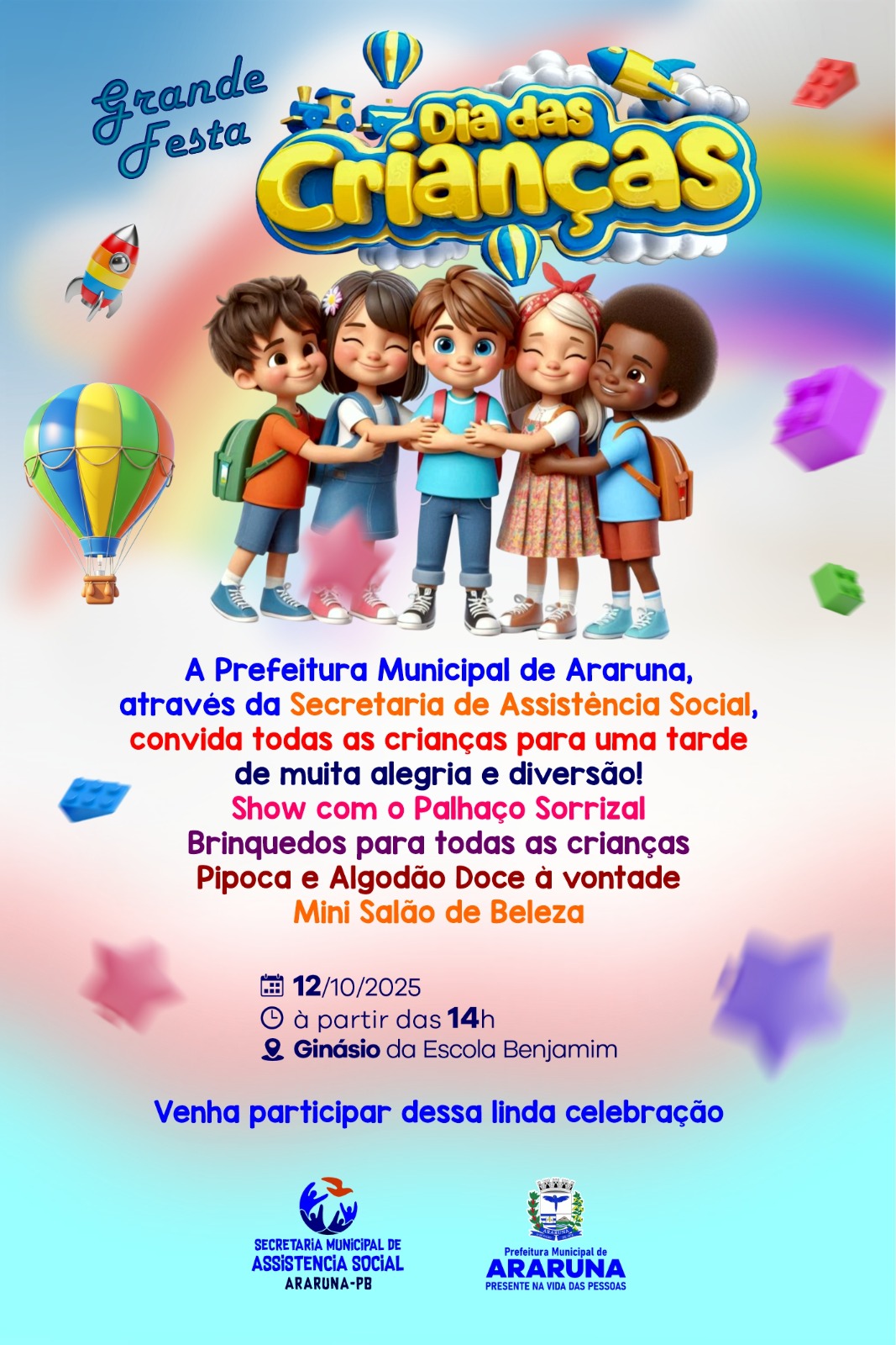 DOMINGO 12: Prefeitura de Araruna realizará festa em comemoração ao Dia das Crianças