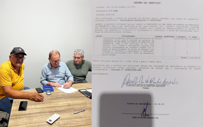 Prefeito Availdo assina ordem de serviço para construção da Praça de Eventos em Araruna